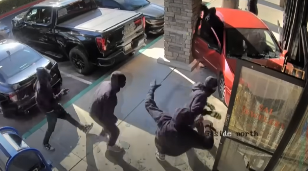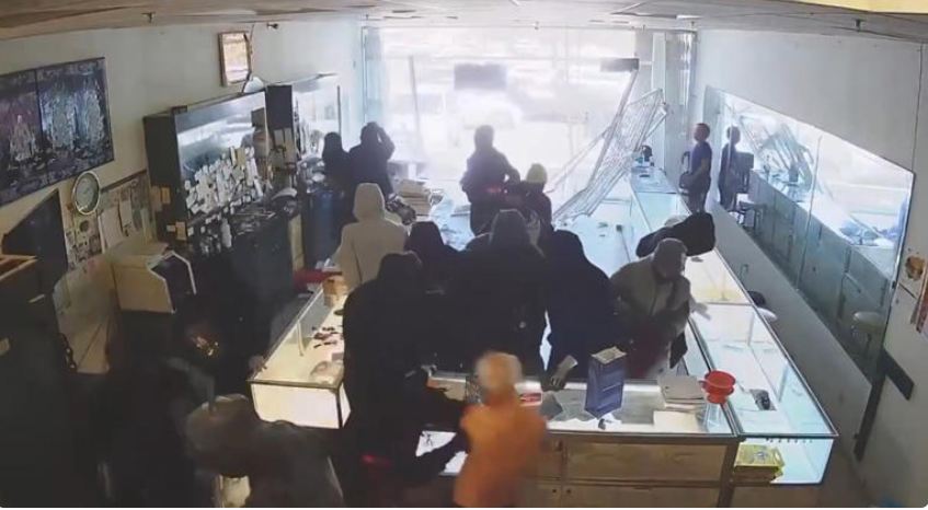 Jersey City, NJ- Surveillance video captured four people carrying out a smash-and-grab robbery at a