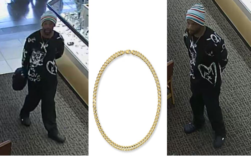 Las Vegas, NV– On December 20, 2025, at fashion show mall, it was reported that a grab and run incident occurred. A male suspect approached the store where he was greeted by an employee. The male proceeded to the gold showcase and began to look at gold necklaces. The male selected a gold necklace, where a second employee assisted to help the male try on the necklace. While the employee was removing the necklace from the male, the male quickly grabbed the necklace from the employee’s hand, where he quickly fled and exited the store. Mall security and the Las Vegas Metropolitan Police Department were notified and responded. No injuries were reported.