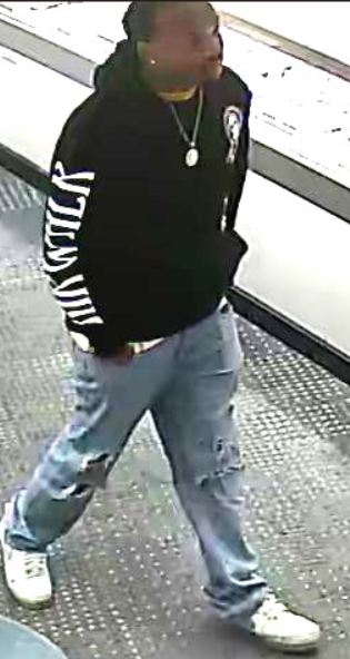 Suspect(s) Description: Black male, mid 30’s, slim build, 5’8”-5’9”. Wearing black hoodie w/white writing on it, blue distressed jeans, white shoes.